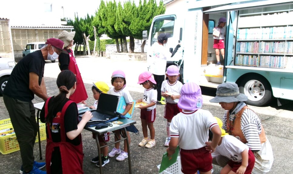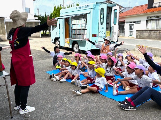 9月25日(木)移動図書館車ぐりぐら号が、今度は有川幼稚園のみなさんのもとへ!