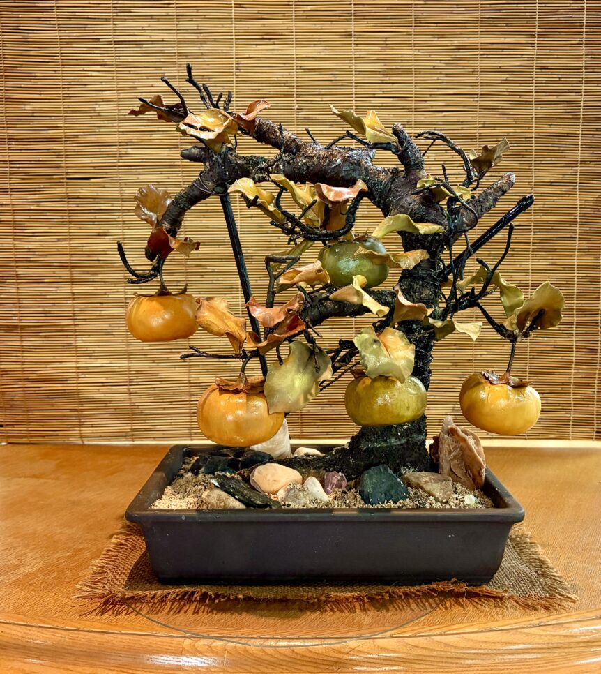 カウンター横にはパン粘土で作られた柿も!