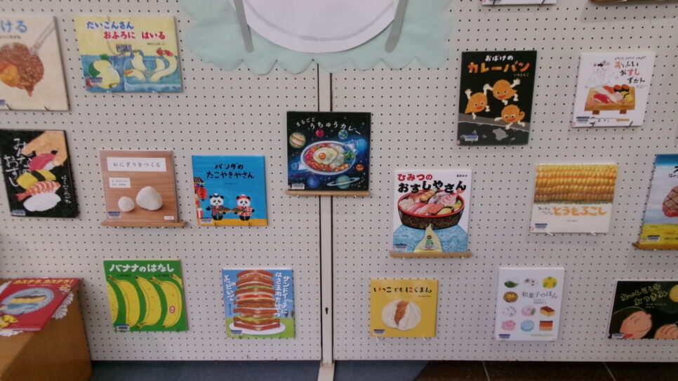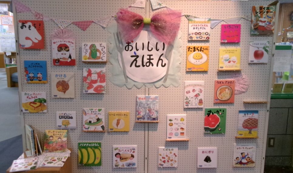 『おいしいえほん』をテーマに、美味しそうな絵本を展示しています!